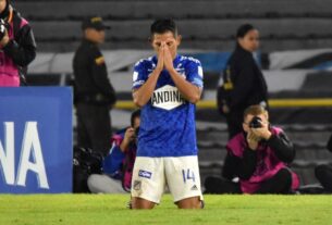 Ya sobre el final de la primera parte, el árbitro Wilmar Roldán, con ayuda del VAR, decreto penal a favor de Independiente Santa Fe. Jhon Velásquez se haría cargo del cobro y anotó el gol del empate en el Centenario.