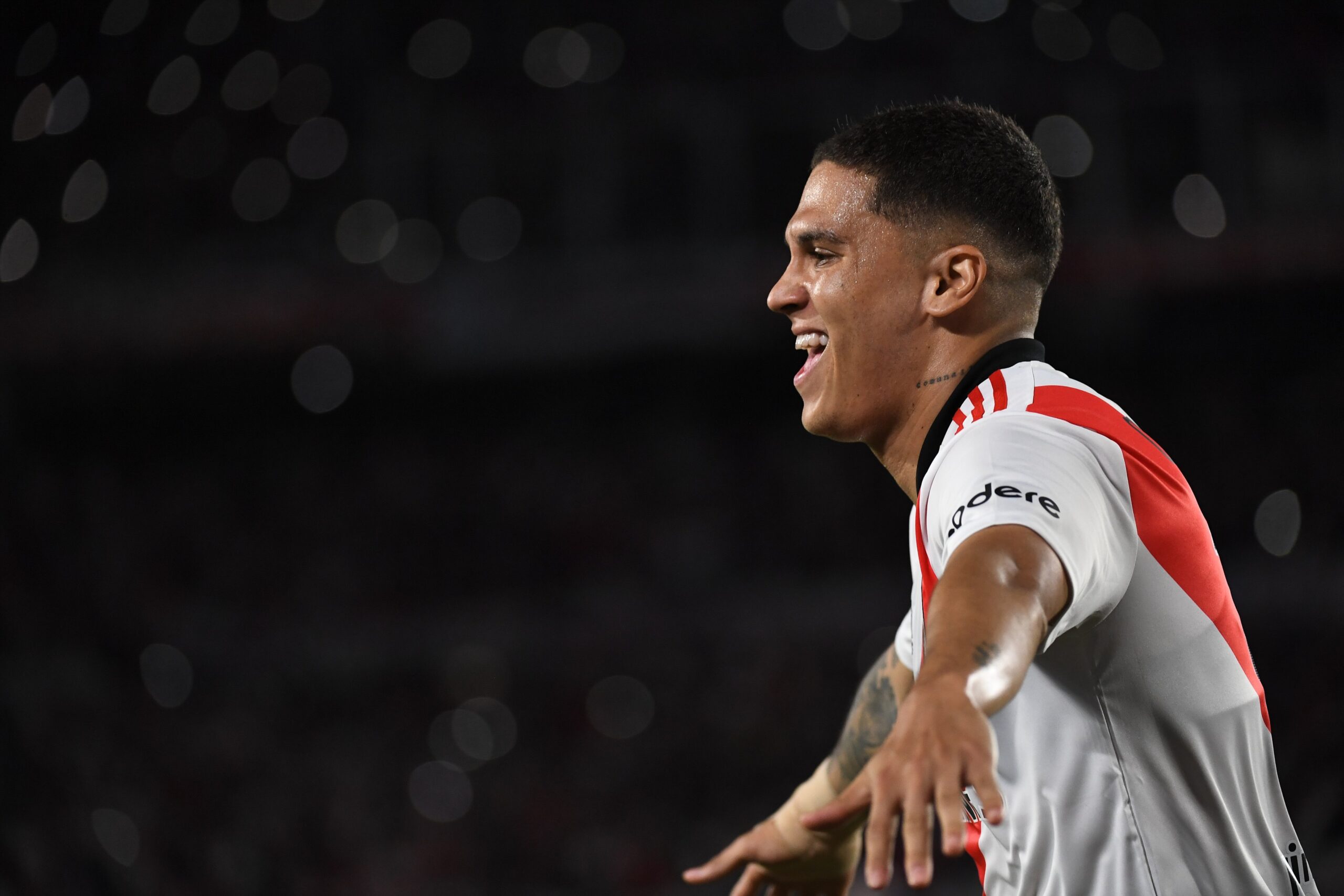 Con un gol de penal, el mediocampista colombiano contribuyó a la victoria a River Plate ante Argentinos Juniors en la Copa de la Liga.