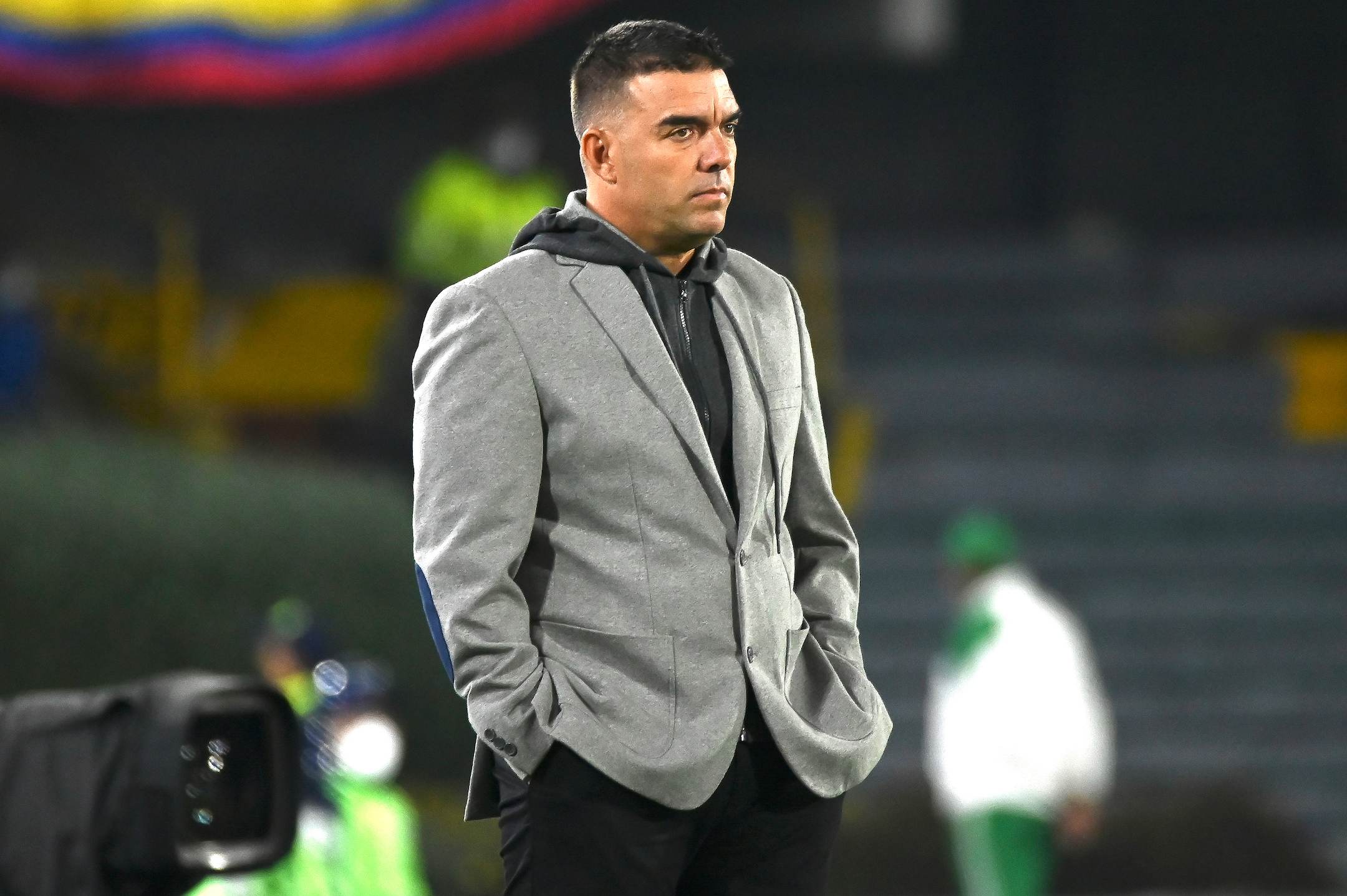 BOGOTA – COLOMBIA, 24-04-2022:Martín Cardetti director técnico del Independiente Santa Fe. Millonarios F.C. y el Independiente Santa Fe en partido por la fecha 17 de la Liga BetPlay DIMAYOR I 2022 jugado en el estadio Estadio Nemesio Camacho El Campín de la ciudad de Bogotá. /Martin Cardetti coach of Independente Santa Fe. Millonarios F.C. and Independiente Sana Fe in match for the date 17 of BetPlay DIMAYOR League I 2022 played at Nemesio Camacho el Campin stadium in Bogota city . Photo: VizzorImage / Samuel Norato / Contribuidor