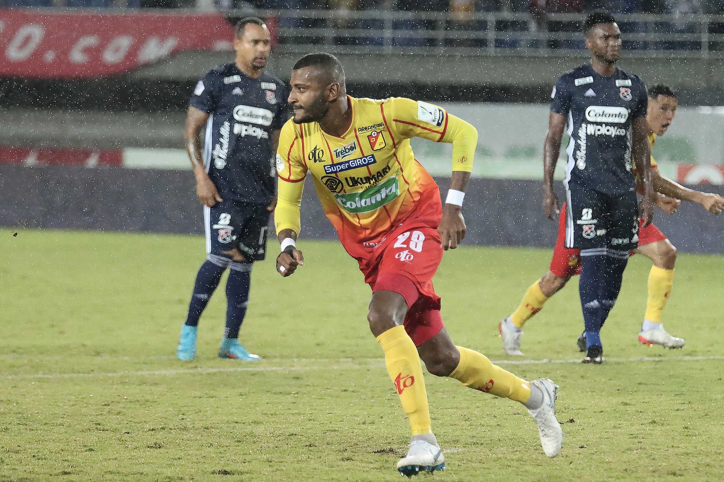 El partido comenzó con el dominio de pelota del Deportivo Pereira, equipo que controló los hilos del juego y logró generar una jugada que generó el primer gol. Un cabezazo en el área de Carlos Ramírez pegó en la mano de Andrés Cadavid, acción que pasó desapercibida hasta que el juez central revisó el VAR y decretó que la jugada era sinónimo de pena máxima. El mismo jugador del cuadro ‘Matecaña’ que provocó la falta se hizo cargo del cobro y con un derechazo abajo puso a celebrar a los aficionados presentes en la noche lluviosa de Pereira.