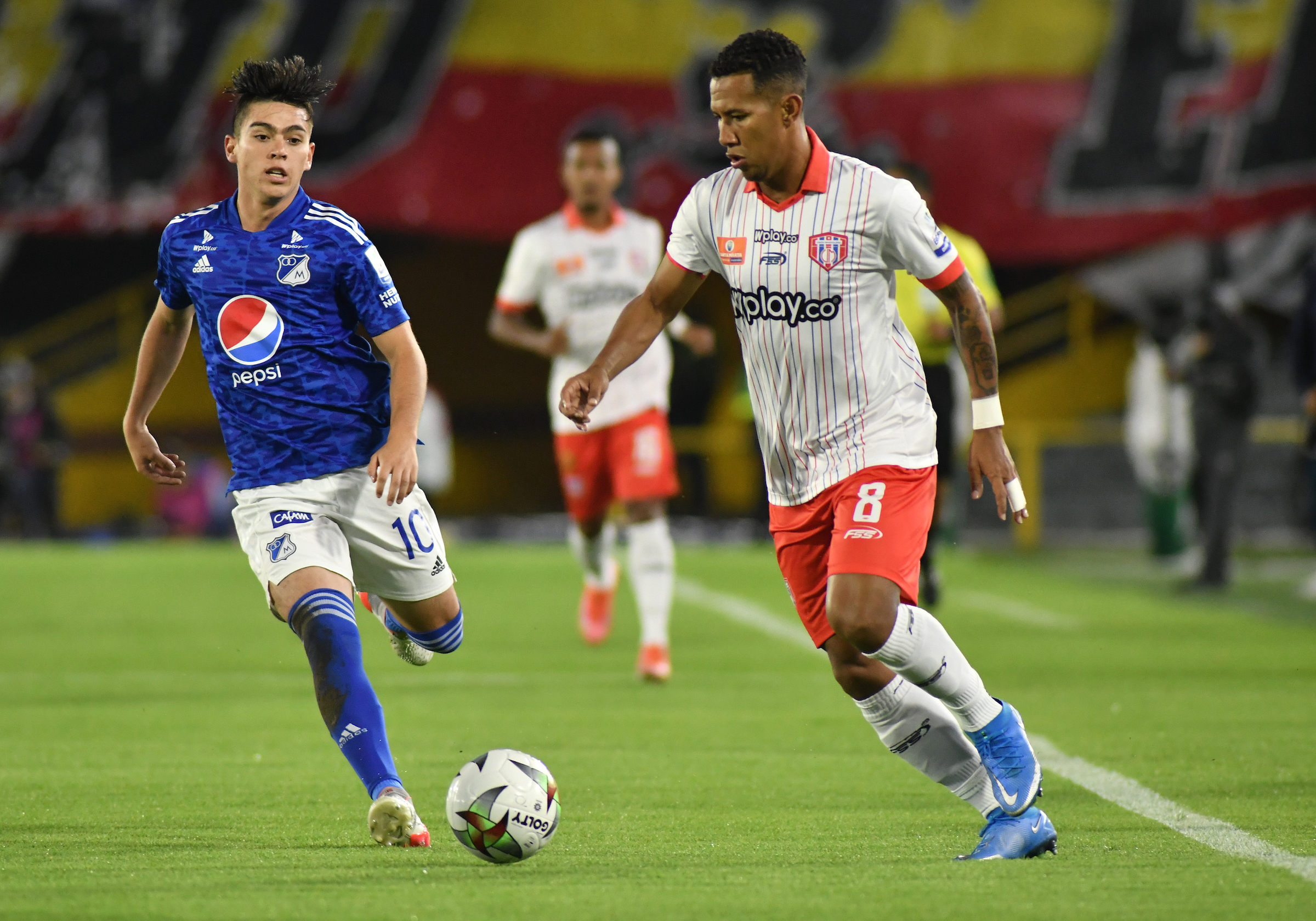 El primer tiempo Millonarios dominó completamente al Unión, pero le sigue haciendo falta el gol. No se puede negar que el equipo embajador intenta encontrar el gol de todas las formas: con balones largos al área, con desbordes por las bandas acompañados de centros aéreos y rastreros, con remates por fuera del área, pero por más que lo intenten no logran encontrar el gol (el VAR le anuló un gol por fuera de lugar a Diego Herazo en el minuto 15′). Millonarios no consigue el gol gracias a la buena organización defensiva del Unión y su buen rendimiento físico para aguantar la intensidad de los ataques del embajador.