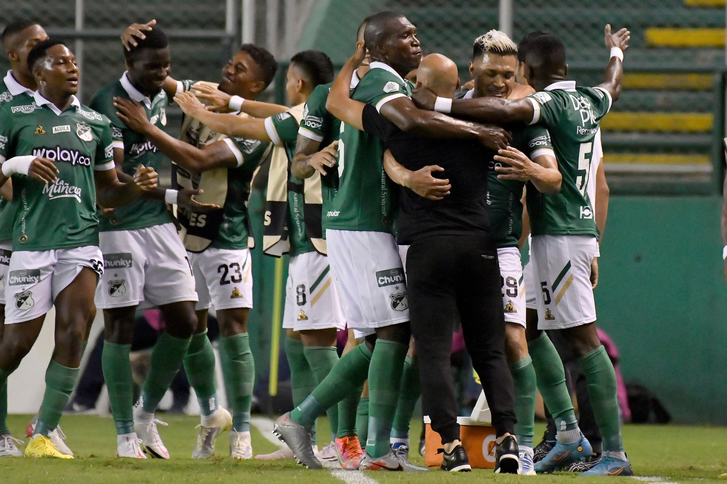 A los 35 minutos, Teo propuso una pared a Lucumí, quien lo habilitó con un taquito para que renatara fuerte y pusiera el 2-0, el cual celebró junto a Mayer Candelo con un fuerte abrazo.