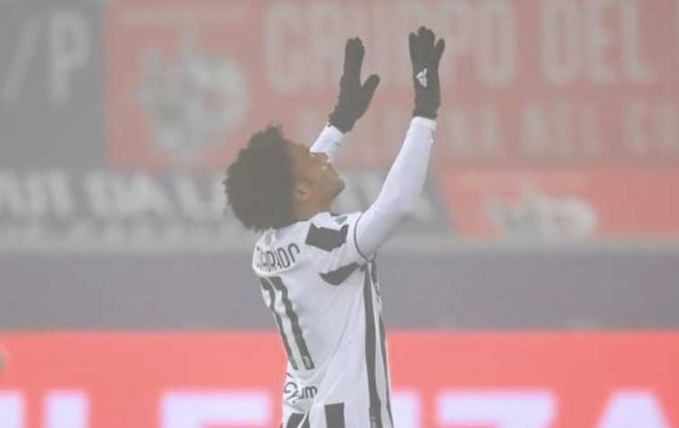 Con un gol del colombiano y otro de Álvaro Morata, la Juventus venció de visitante al Bolonia y sigue firme en la lucha por meterse en puestos europeos.