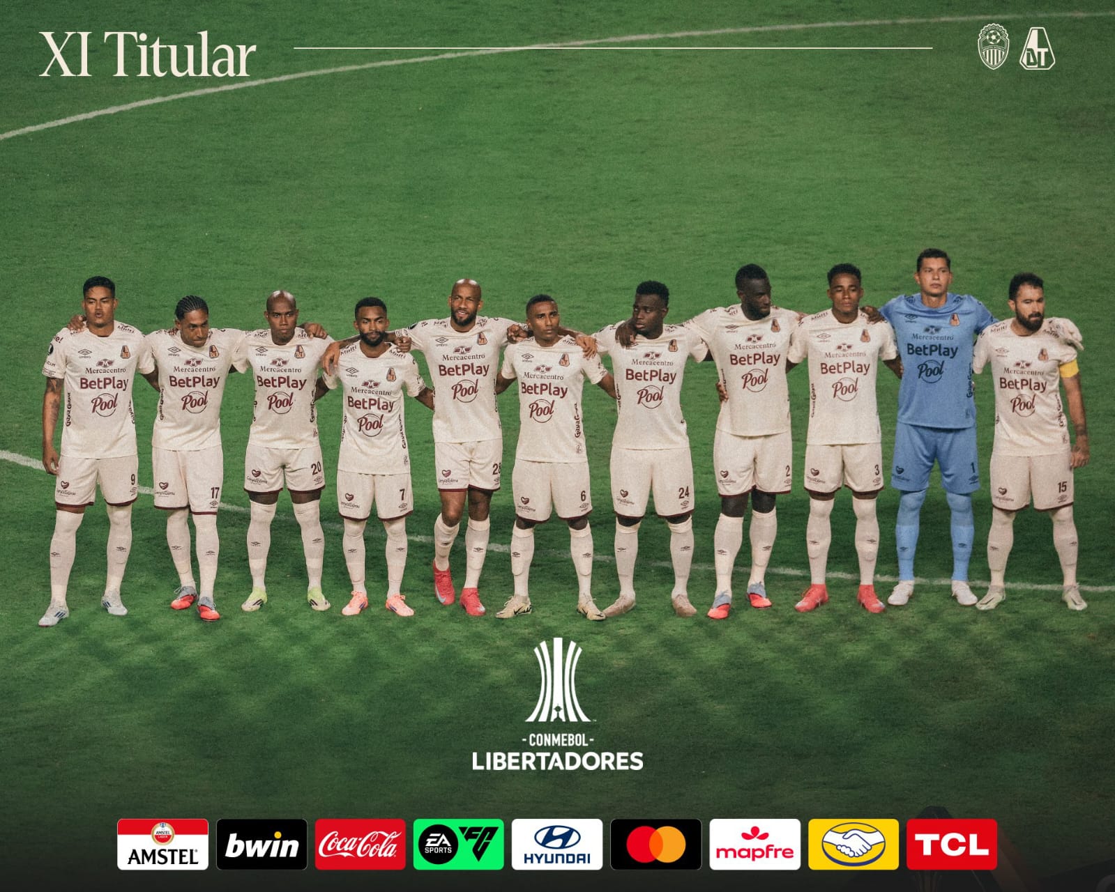 Once inicial del Deportes Tolima en Venezuela. (Fuente: @cdtolima en X, 19 de febrero de 2025).